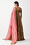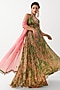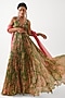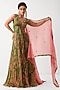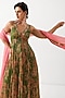Featuring an avocado green anarkali in chiffon base with print and zardosi embroidery. It is paired with silk blend pants and a buff katan dupatta having tassels detail. Style it with pearl or kundan jewellery and soft glam makeup for a graceful finish, Perfect for mehendi functions, sangeet ceremonies or daytime celebrations.