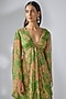 Featuring an avocado green tunic in chiffon base with print and sequin embroidery. It is paired with a printed sharara. Accentuate it with dangler earrings and heels for a festive occasion, sangeet or mehendi ceremony.