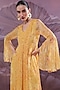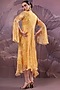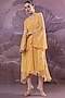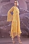 Featuring a butter yellow high-low dress in chiffon base with flared sleeves and print. Team with up dangler earrings and stilettos, great for evening soirees.