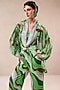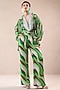 Featuring a forest green shirt in chiffon base with leheriya print. It is paired with a silk blend cowl-neck crop top and pants. Team with up dangler earrings and stilettos, great for wedding or festive ceremonies.