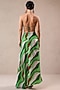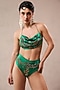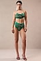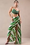 Featuring a forest green bralette in chiffon base. It is paired with stretch satin black bottoms and a coverup having leheriya print. TeTeam with up a tote bag and flats, great for a beach or a vacation wear.