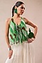 Featuring a forest green halter boho top in chiffon base with resham cutwork and cutdana hand embroidery, including lehar print. It is paired with ivory wrinkle crepe ruched hand embroidered palazzo pants. Accentuate it with statement jewellery and block heels for evening soirees.