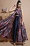 Featuring a navy blue crop top in chanderi base with leheriya print and sequins and bead embroidery including a bias flare. It is paired with matching culotte pants.