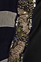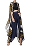 Featuring an olive green and navy blue stripe print cape in chiffon base with beads and sequins embroidery on the neckline.