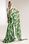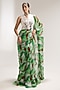 Pacific Green Chiffon Lehar Printed Pre-Pleated Saree Set