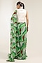 Featuring a pacific green pre-pleated ruffled saree in chiffon base with an attached underskirt and lehar print. It is paired with a chanderi koti having mirror and dabka embroidery. Accentuate it with statement jewellery, embellished wedges, and a potli bag for a complete look, Perfect wear for a cocktail, engagement or mehendi ceremony.