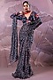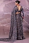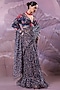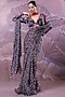 Persian Blue Chiffon Printed Pre-Pleated Ruffled Saree Set