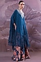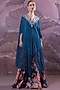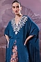 Featuring a persian blue tiered kaftan in silk base with gota-patti and floral embroidery. It is paired with silk blend wide-leg pants. Team with up dangler earrings and stilettos, great for wedding or festive ceremonies.