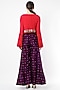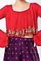 Featuring a red boho top in wrinkle crepe base with embroidery. It is paired with contrasting purple bell bottom pants in chanderi base having diamond print.