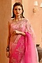 Rose Pink Ombre Organza Gota Patti Embroidered Saree Set