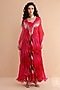Rose Pink & Red Chiffon Hand Embroidered Kaftan With Dress