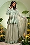 Featuring an aqua top in organza base with thread work. It is paired with an embroidered skirt and a dupatta. Complete your festive look with dangler earrings and elegant heels.
