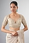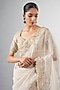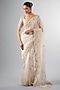 Featuring an ivory saree in organza base with tikki and cutdana work. It is paired with a blouse. Accentuate the designer saree with statement jewellery and heels for a wedding, sangeet or engagement ceremony.