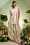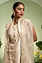 Featuring an ivory cape in organza satin dupion base. It is paired with a kurta and pants. Accentuate it with statement jewellery and heels for festive occasions or sangeet ceremony.