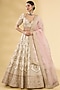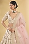 Featuring an ivory lehenga in silk base with resham and zardosi embroidery. It is paired with an embroidered blouse and a soft pink organza dupatta. Accentuate with statement earrings and heels for weddings or sangeet ceremonies.