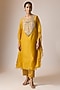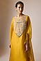 Featuring a mustard kaftan in organza base with work. It is paired with lycra pants. Accentuate it with kundan jewellery, embellished heels, and a clutch bag for a complete look. Perfect wear for festive occasions or haldi ceremony.