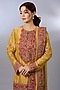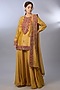 Featuring a mustard kurta in tissue base with zardosi and resham embroidery. It is paired with sharara pants and an organza dupatta. Accentuate with statement earrings and heels for a festive look.