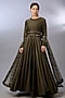 Featuring an olive green anarkali in chanderi base with embroidery. It is paired with an embroidered tulle dupatta. Accentuate it with statement earrings and heels for festive occasions or weddings.
