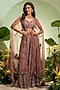 Featuring an onion pink top in organza base with thread work. It is paired with embroidered sharara pants and a dupatta. Complete your festive look with dangler earrings and elegant heels.
