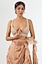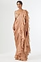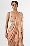 Featuring a peach draped saree in satin organza base. It is paired with a blouse having resham, tikki and bullion embroidery. Accentuate it with earrings and heels for a festive occasion or wedding ceremony.