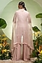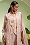 Featuring a pink cape in organza and chiffon base with embroidery. It is paired with a waistcoat and sharara pants. Accentuate with statement jewellery and heels for a festive occasion.