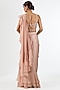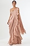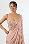 Featuring a pink draped saree in satin base. It is paired with a sheer organza blouse having sequins, cutdana and dori embroidery. Accentuate it with earrings and heels for a festive occasion or wedding ceremony.