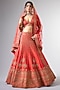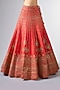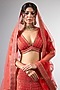 Featuring a red lehenga in raw silk base with tikki work. It is paired with a blouse and a tulle dupatta. Accentuate the designer lehenga with statement jewellery and heels for a wedding, sangeet or engagement ceremony.