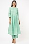 Featuring a mint green pleated kurta in pure cotton cambric base with hand block print. It is paired with matching pants.