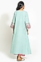 Featuring an aqua kurta in handwoven cotton base with hand and machine embroidery, including a v-neck. Accentuate it with pants, earrings and heels, perfect for a pooja ceremony or festive celebration.