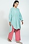 Featuring an aqua tunic in handwoven cotton base with hand embroidery, round neck and a placket. Accentuate it with pants, earrings and heels, perfect for a pooja ceremony or festive celebration.