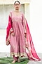 Featuring a blush pink anarkali in silk chanderi base with hand and machine embroidery, including lace detail. It is paired with surat chanderi churidar pants and a dark pink silk organza dupatta. Accentuate with statement earrings and heels for festive occasions or wedding ceremonies.