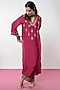 Dark Berry Chanderi Hand & Machine Embroidered Kurta