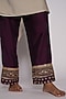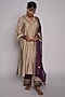 Featuring an ivory kurta in chanderi base with hand and machine embroidery. It is paired with contrasting purple embroidered pants and an organza embroidered dupatta.
