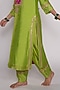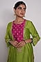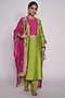 Featuring a lime green and rani pink kurta in chanderi base with machine and hand embroidery. It is paired with matching lime green pants and an organza dupatta having floral gota and sequins embroidery.