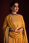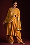 Featuring a mustard kurta in cotton base with silver mukaish and chikankari embroidery. It is paired with matching churidar pants and a kota dupatta having foil print.