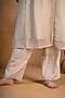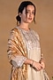 Featuring a sage green kurta in chanderi silk base with zardosi embroidery. It is paired with matching cotton silk pants and a tissue dupatta having silver zari embroidery.