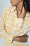 Featuring a yellow and white checkered shirt dress in handwoven cotton base with cutwork embroidery and concealed placket. Accentuate it with earrings and heels, perfect for a casual wear.