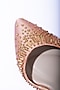 Featuring a pair of light rose gold stilettos in artificial satin base with metallic hand embroidery, pointed toe and dainty back straps. It has 3.5-inch heels. Perfect wear for a wedding or festive occasion.