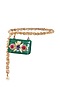 Featuring a sacramento green belt bag in faux leather base with crystal stones and metal ornament embellishments.