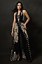 Black Organza Sequins Embroidered Hand Draped Jacket Set