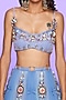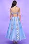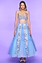 Featuring a blue and lilac paneled half lehenga in tulle base with glass stones, glass crystals, and beads embellishments. It is paired with matching blouse.