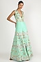 Featuring a mint green jumpsuit in raw silk base with 3D embellishment. It is paired with a matching belt.