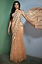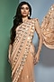 Featuring a nude pre-stitched saree in tulle base with beads and acrylics floral motif embroidery. It is paired with a matching crepe cutwork embroidered blouse. Perfect wear for festive occasions or wedding ceremonies.