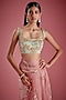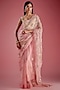 Featuring a pink shaded pre-stitched saree in tulle and organza base with gold, sequins, gold metallics and cutdana embroidery. It is paired with a rose pink blouse having straight neckline and abstract embroidery. Accentuate it with statement earrings, a sleek clutch, and embellished heels for an effortlessly elegant look, perfect for weddings, festive celebrations, or evening soirees.