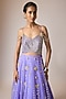 Papa Don't Preach by Shubhika features a royal blue gown in tulle and net base with a strappy V-neckline, golden zari, sequins and mirror hand embroidery. Elevate it with statement zircon earrings, a sleek bun or soft curls, and gold stilettos for a sangeet, engagement, or cocktail night.