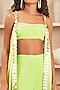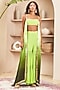 Papa Dont Preach Pret features a green ombre cape in crepe base with acrylic chitta and embroidery. It is paired with an embroidered bustier and sharara pants. Style this designer skirt set with statement earrings and block heels for a sangeet or festive ceremony.