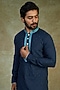 Featuring a teal blue kurta in pure chanderi base with hand embroidery. It is paired with contrasting off-white pants. Perfect wear for festive occasions.