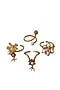 Featuring a set of four antique gold finish adjustable stackable floral rings, set in brass. Perfect for adding a touch of elegance to any outfit, the adjustable design ensures a comfortable fit, while allowing you to mix and match for a personalized style statement.