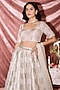 Featuring an ivory lehenga in banarasi silk base with floral print. It is paired with a banarasi embellished blouse and a flat chiffon dupatta. Accentuate it with polki jewellery, a potli bag and block heels for a wedding, sangeet or engagement ceremony.