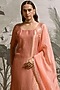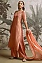 Featuring a peach kurta in banarasi tissue base with lines detail. It is paired with flat silk pants and a flat chiffon dupatta. Accentuate it with polki stud earrings and heels for festive occasions, sangeet or cultural events.